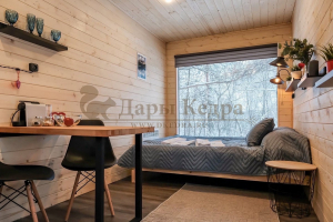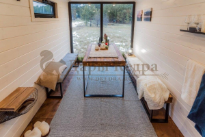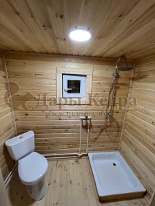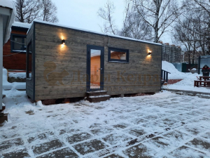 Это утепленный домик прямоугольной формы с панорамным окном и двумя помещениями: жилой комнатой и санузлом с душевой зоной. Может быть изготовлен по готовым стандартам или вашим индивидуальным размерам. Современные материалы, используемые при проектировании, отличаются экологичностью и прочностью.